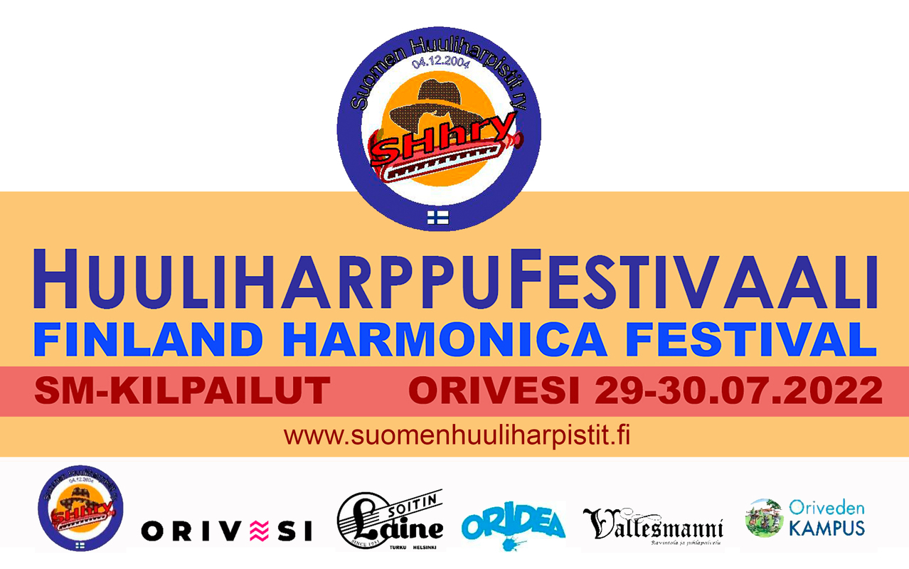 FINLAND HARMONICA FESTIVAL-huuliharppufestivaali ja huuliharpunsoiton SM-kilpailut 29-30.07.2022 Oriveden Kampus (ent. Oriveden Opisto), Koulutie 5, 35300 Orivesi Tässä videokooste: https://www.youtube.com/watch?v=XHrn6Gr83cA Tässä kuvalinkki: https://www.suomenhuuliharpistit.fi/kuvagalleria/kuvia-munnaritreffit-tapahtumist/ Lauantain ohjelmassa olivat viralliset SM-kilpailut. Diatoninen: 1. Veli-Jussi Lietsala, Orivesi 2. Mauno Hongisto, Lappeenranta 3. Martti Saarelma, Helsinki Kromaattinen: 1. Mauno Hongisto, Lappeenranta 2. Heino Väisänen, Mikkeli 3. Juhani Niskanen, Mäntyharju Blues: 1. Martti Saarelma, Helsinki 2. Veli-Jussi Lietsala, Orivesi 3. Kyösti Kuusela, Tampere Yhtye: 1. Mäntyharjun Huuliharpistit Tuomaristo myönsi Maestro-palkinnon ja Soitin Laineen lahjakortin Mäntyharjun Huuliharpisteille.