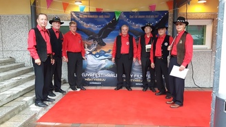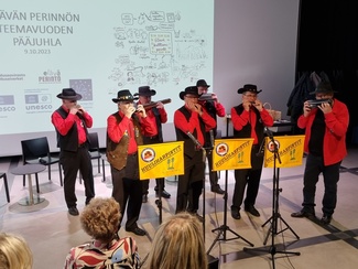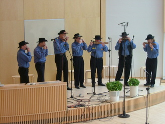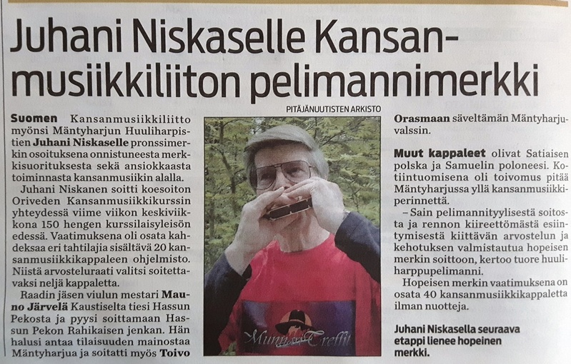 ![Kultainen pelimannimerkki Ritarihuoneella Juhani Niskaselle 2018]() | ![Suomen laulun soittaa Mäntyharjun Huuliharpistit - yhtye]() Suomen laulu |