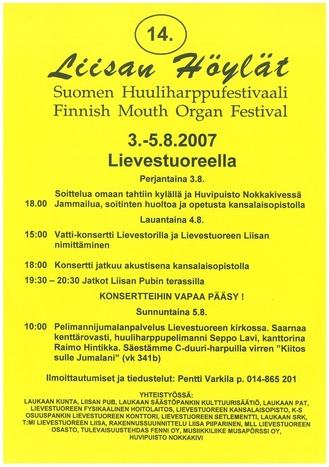 ![]() Mäntsälässä Sepänsoitto 2013 SM 3 | ![]() Mäntyharjun Huuliharpistit 13.10.2010 |