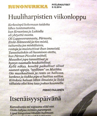 ![]() Iltalehti 26.10.2013 | ![]() Munnarimaestro Länsi-Savo 17.12.2013 |